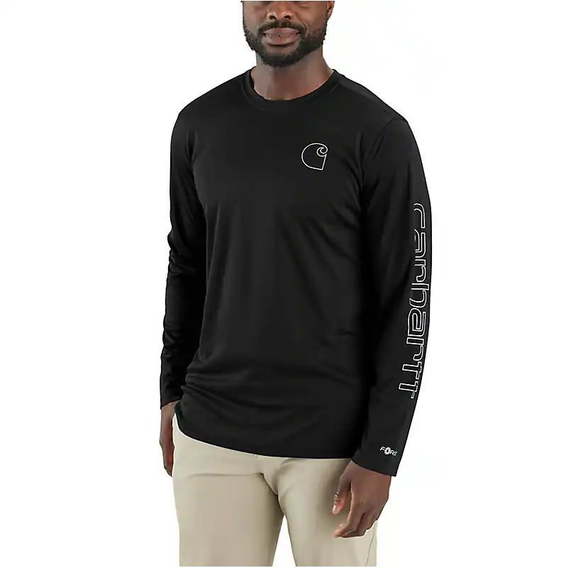 When the sun is fierce, this men's Carhartt long-sleeve t-shirt fends off the rays. Yard work or a day on the boat, lightweight, UPF-rated polyester covers you up without weighing you down. It also fights sweat and odor to keep you feeling fresh and focused on the task at hand.